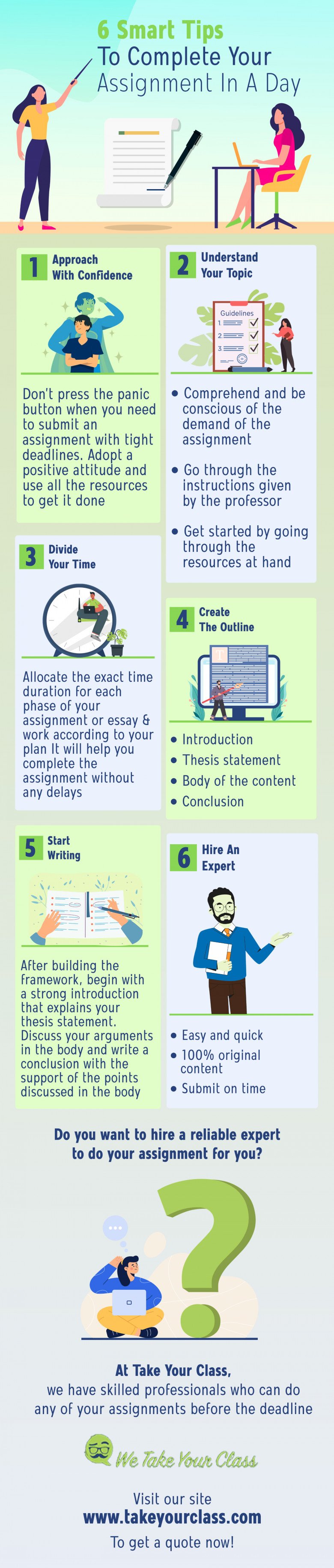 Do you need to finish your online class assignment in a day? Make use of these smart tips to complete it on the scheduled time. If you need expert assistance, call us and ask, “Can you do my online class?” We can improve your academic goals. Visit us at https://www.takeyourclass.com/ for more details.