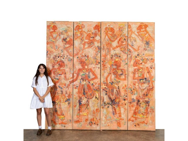 A vibrant and colorful four-panel oil on canvas painting by Nyoman Gunarsa (Indonesian, 1944-2017), titled Balinese Dancers, impressive at a combined 106 ¼ inches by 107 inches, sold for $20,000 in a three-day, Fine Estates & Collections auction held August 25th-27th by Ahlers & Ogletree. The painting was the top achiever of the three-day, 1,289-lot event.