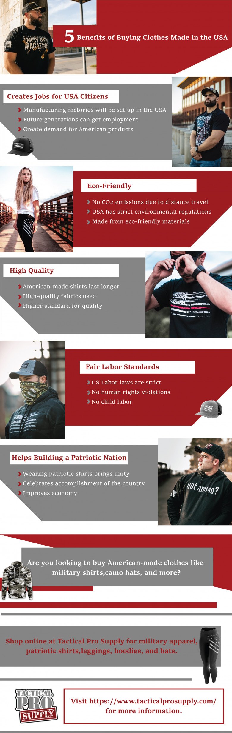 “Made in the USA” is a trend that won’t disappear anytime soon. Here’s why you need to buy American clothes instead of clothes that are exported from other countries. At Tactical Pro Supply, you can buy patriotic apparel and get amazing discounts. Visit https://www.tacticalprosupply.com/ for more information.