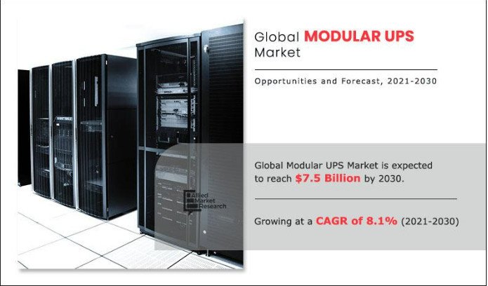 The global modular UPS market size was valued at $3.5 billion in 2020, and modular UPS market forecast projected to reach $7.5 billion by 2030, with global modular UPS market forecast expected at a CAGR of 8.1% from 2021 to 2030.
