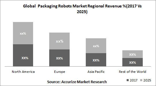 Based on geography, the global packaging robots market has been segmented into North America, Europe, Asia-Pacific and (RoW). The U.S., Mexico and Canada are covered under North America wherein Europe covers Germany, UK, France, Spain, Italy, and others. Asia-Pacific covers India, Thailand, South Korea, China Japan, and others. Rest of the World (RoW) covers South America, Middle East and Africa.