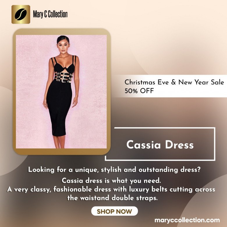 Mary c collection provides a unique, stylisgh and outstanding Cassia dress. A very classy, fashionable dress with luxury belts cutting across the waistand double straps. It is breathable and a comfortable bandage dress that hugs your body perfectly making you look slimmer.