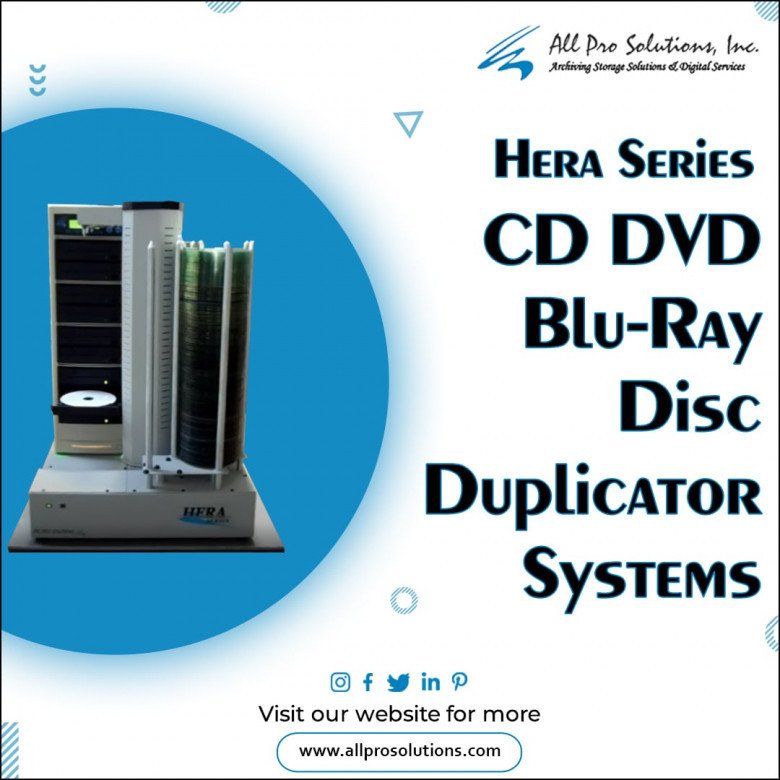 Hera 6 is a fully self-contained CD DVD BD duplicator with its own hard drive and author. No PC or Mac host required. Standalone automated duplication system.