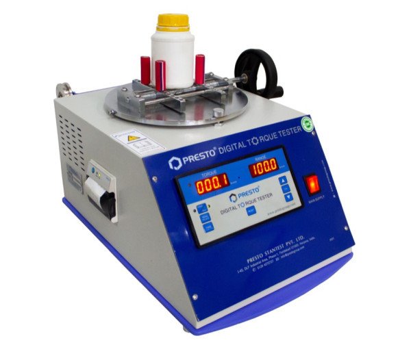 The torque testing machine for bottles is used to determine the torque of Threaded or screwed caps on bottles and similar containers. This measurement with the torque Tester for bottles is particularly important to and out whether the containers are properly closed. A container's cap torque is not important to determine only for its product integrity, but also for customer satisfaction and their safety