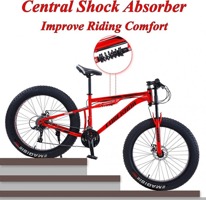 Order Online NENAGGE Fat Tire Full Suspension 26 Inch Beach Snow Mountain Bike from Mountain Bikes. The price of NENAGGE Full Suspension 26 Inch Mountain Bikes is $605. NENAGGE Fat Tire Full Suspension 26 Inch Mountain Beach Snow Bike has a Shimano transmission (21 speeds), dual mechanical disc brakes, adjustable and comfy saddle, with wide range of Colors. NENAGGE Fat Tire 26 Inch Beach Snow Mountain Full Suspension Bike has excellent wind-breaking abilities off-road, strong support, a frame made of high carbon steel.